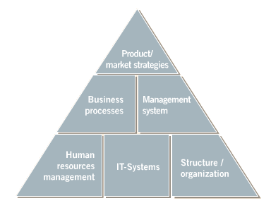 - Management structure: new management principles / corporate values; role and task descriptions; introduction of agreed objective procedures